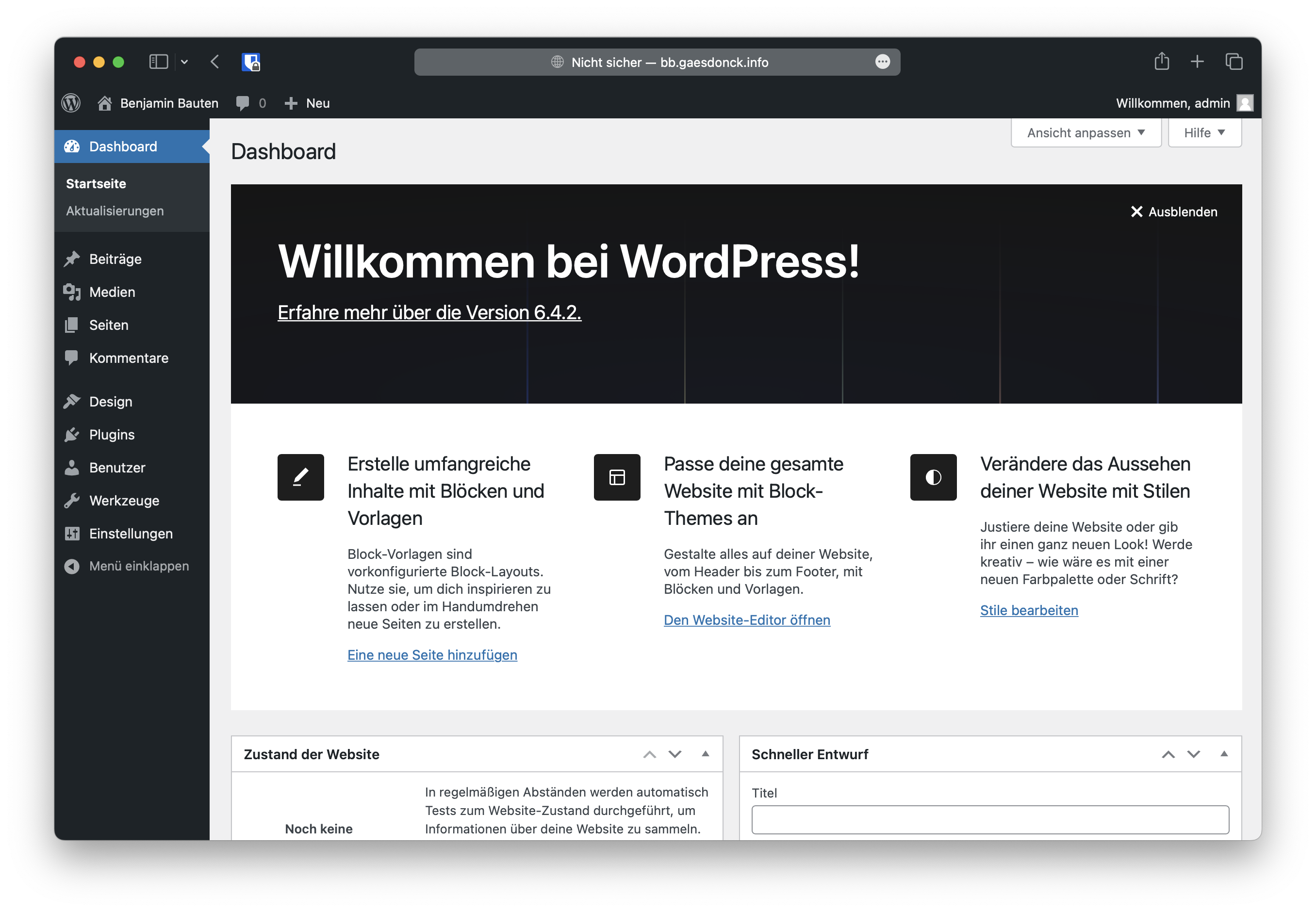 Wenn Sie jetzt auf dem Dashboard laden: Herzlichen Glückwunsch, Sie haben WordPress erfolgreich auf Ihrem Webserver installiert und können nun mit der Konfiguration starten.